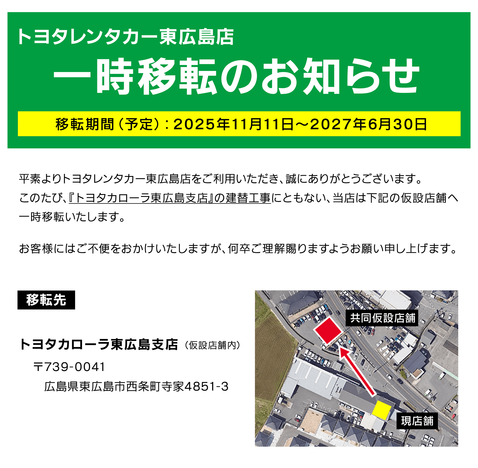 東広島店 一時移転のお知らせ